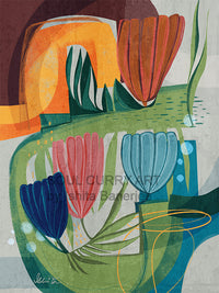 Modern, abstract, meets Cubism, in these colorful pieces that explore the season of rebirth and flourishing