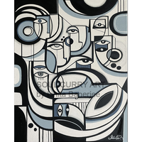 Modernes kubistisch-expressionistisches Kunstwerk mit ineinander verschlungenen Gesichtern in einer ruhigen, monochromatischen Palette. Zeitgenössisch, mutig, dramatisch und doch elegant in seiner Ausdruckskraft, Grey Matter ist eine Darstellung der wechselseitigen Beziehung zwischen Menschen, ihren Geschichten und der Natur.