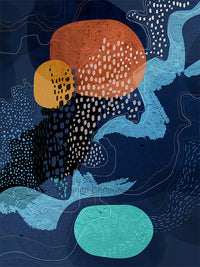 Midnight Waterfall s a nature inspired, mixed media, mid century modern style art print to represent cascading waterfalls lit by the moonlight night. This rich, nature inspired, abstract art print is full of texture, movement and is reminiscent of flowing rivers along a stark and beautiful landscape.