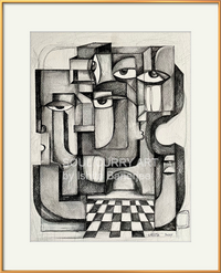 Modernes kubistisch-expressionistisches Kunstwerk mit ineinander verschlungenen Gesichtern, gemalt mit Kohle und Conté-à-Paris- Bleistiften. Zeitgenössisch und mutig, dieses strukturierte Gemälde ist eine Darstellung davon, wie wir von den Stürmen, die uns umgeben, geformt und geschwächt werden. Eine Ode an den menschlichen Geist.