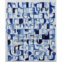 A free flowing painting in deep indigo blue ink- rushing like the waves, still in the individual compartments, collectively and individually whole.