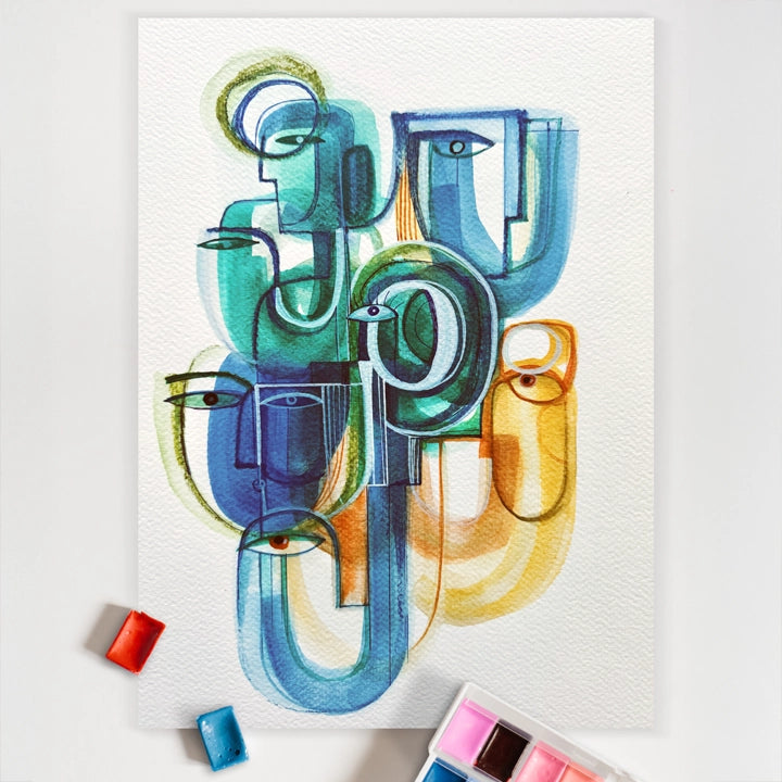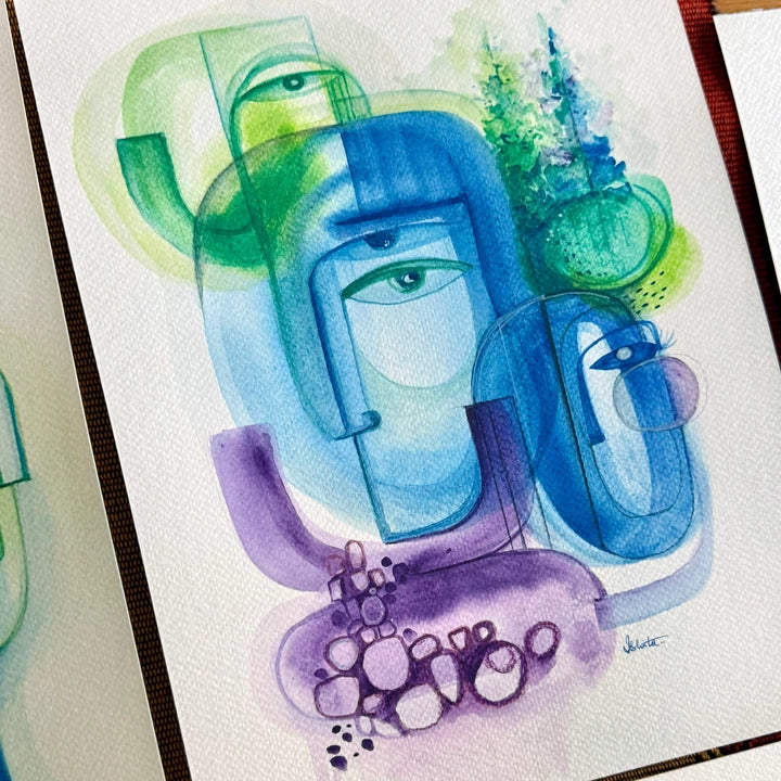 Flow – Mischtechnik, Originalgemälde auf Papier.