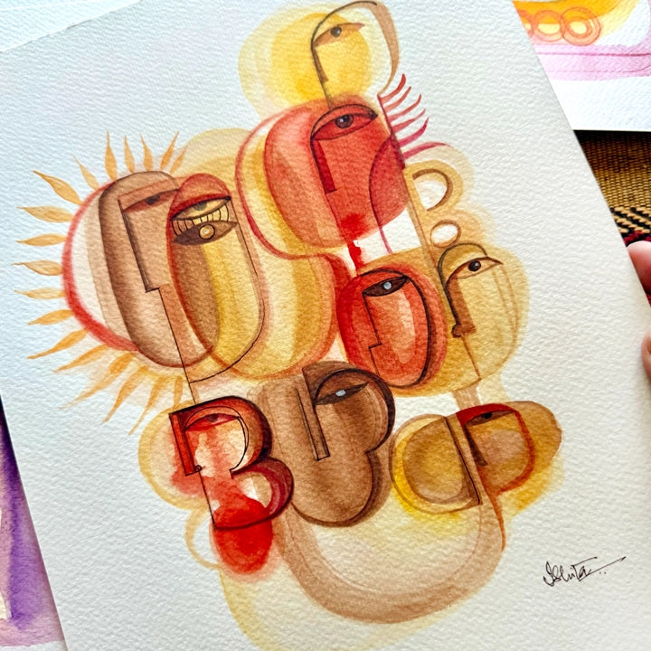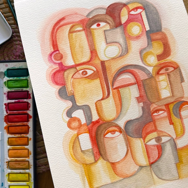 Kubistisches modernes Gemälde von Ishita Banerjee, Soul Curry Art