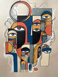 Kubistisches modernes Gemälde von Ishita Banerjee, Soul Curry Art